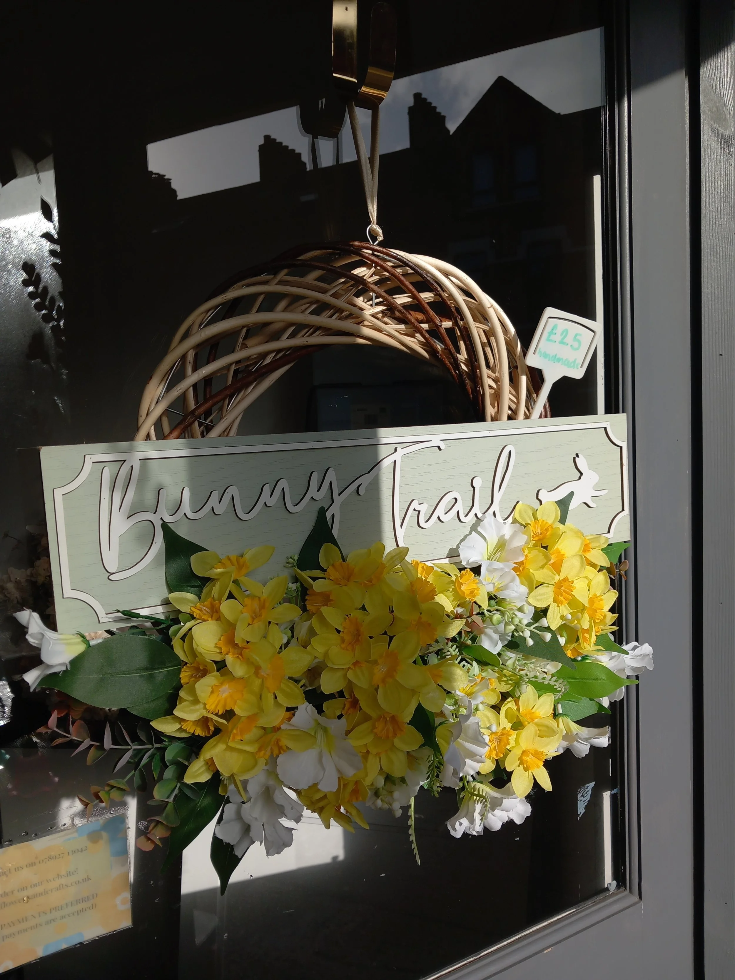 These flowers are glued onto the wreath to ensure thy do not blow off in the wind or harsh weather. For extra protection, you can spray your wreath with hairspray!