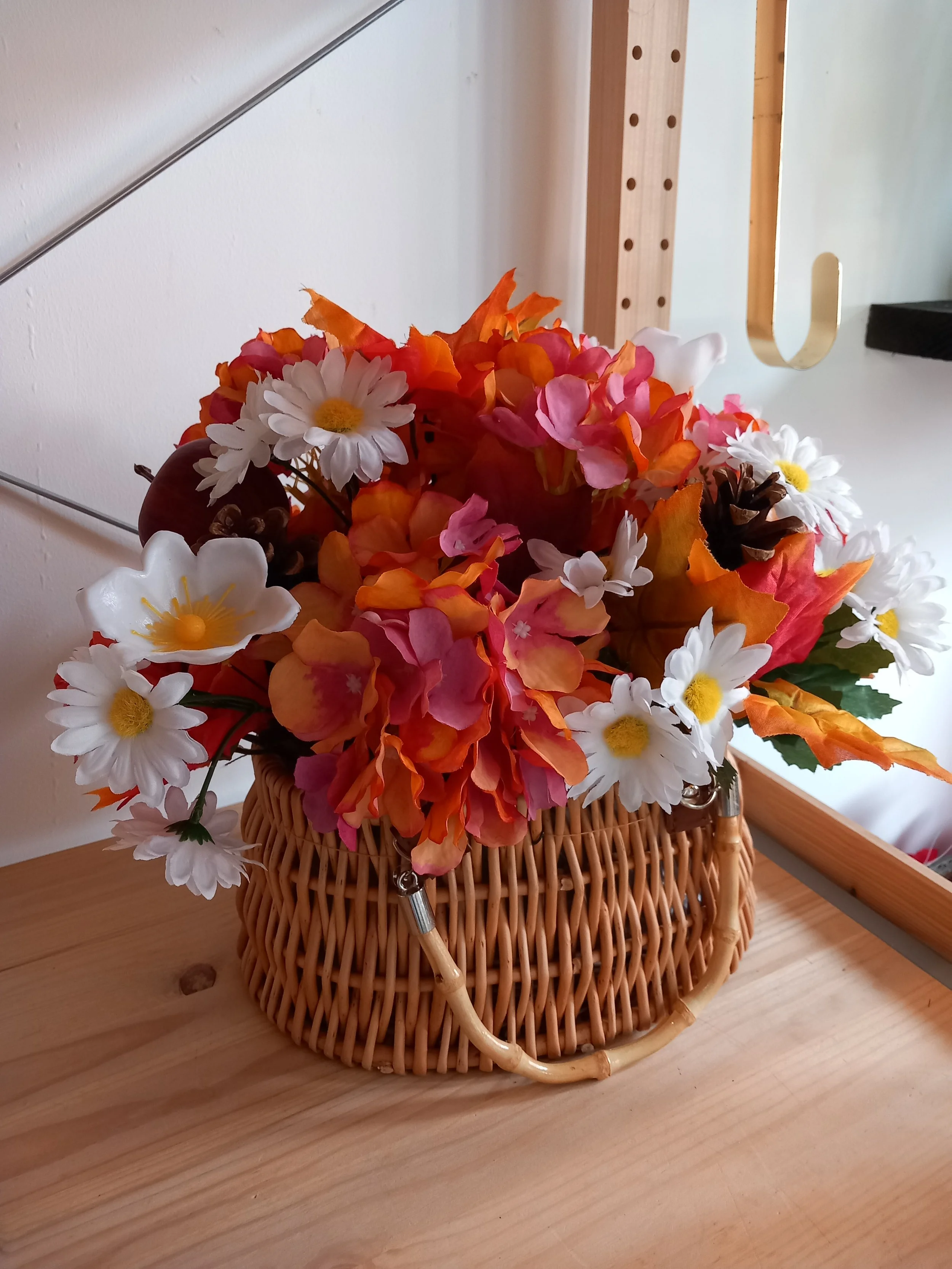 Wire pumpkin with autumn leaves and mini pumpkins. Perfect for bringing autumn to your home.